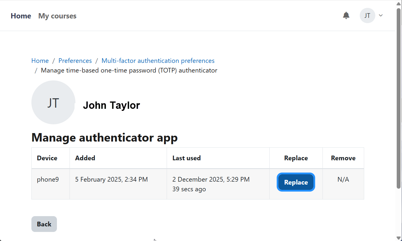 As you enroll in courses, you will be able to see a listing, along with the status of the course on the “My courses” webpage. Select the course title to open the course.