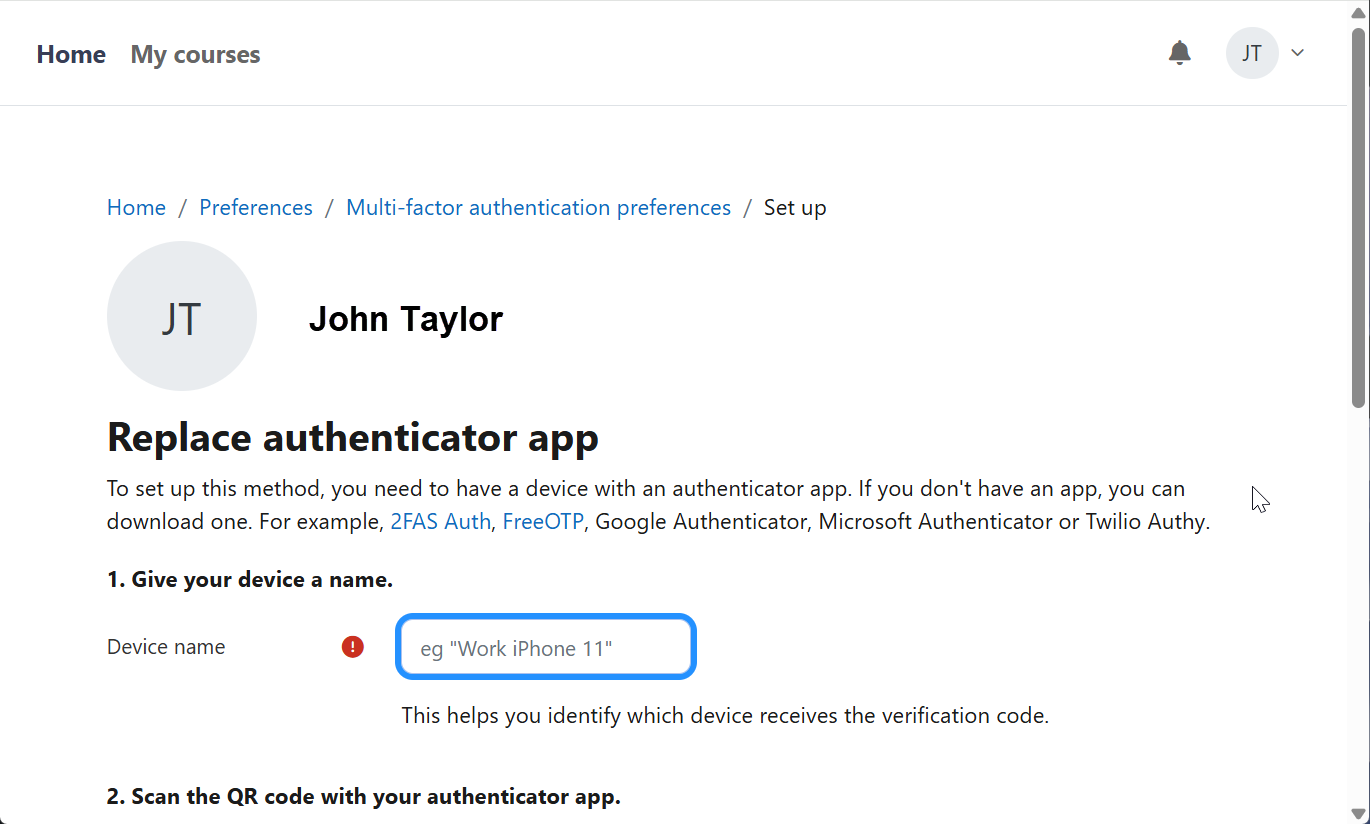 The NCSACW Online Tutorials site requires you to set up multi-factor authentication, or an MFA, after creating a new account. You can set up an MFA during the account creation process or skip the MFA setup for up to 1 hour. When you log into the NCSACW Online Tutorials site after the grace period ends, you are directed to set up an MFA before proceeding further. You will not be able to access the course until you set up an MFA. Select the “Multi-factor authentication preferences” link.